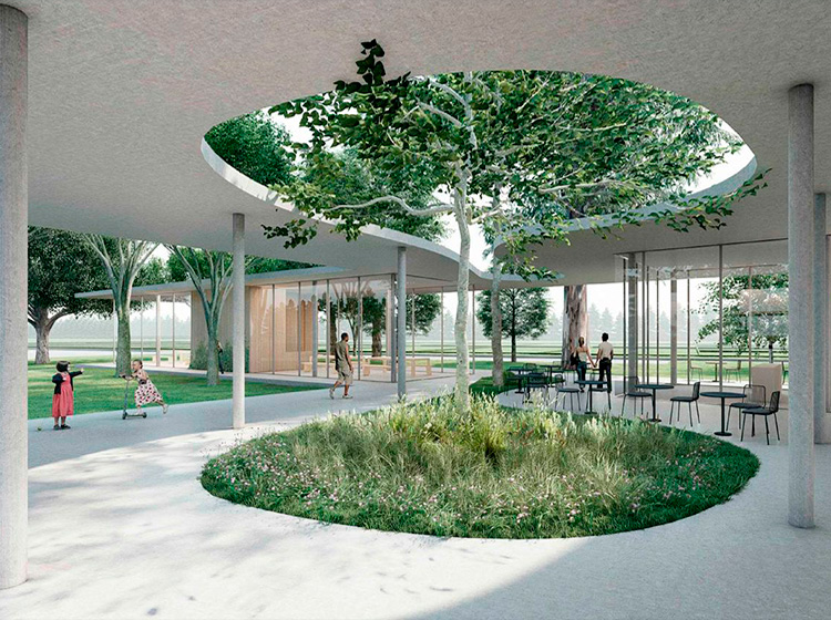 Cuenta con una frondosa arboleda tanto en su perímetro como en el interior, en la que se emplazan la mayoría de sus amenities y zona social.
